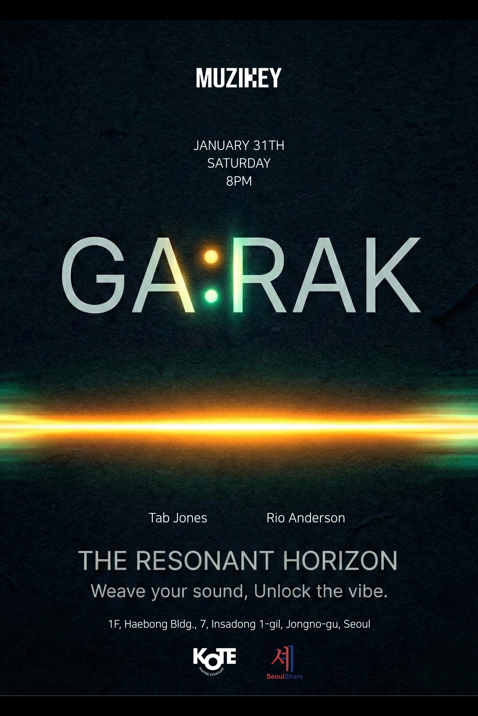 🎫 1 FREE Drink & Curated Finger Food! 🍹🍢 📍 Location: KOTE, Insadong 📅 Date: Jan 31, 2026 (Sat) | 8 PM Early Bird - 29,000 KRW GA - 33,000 KRW GA:RAK is an immersive music festival designed to wash away the fatigue of the everyday. Taking its name from the Korean word for "melody," the event is a space where different walks of life meet through the medium of sound. At the core of GA:RAK vol.1 is the intersection of Korean traditional music and modern club culture. Multiple DJs reinterpret traditional Korean sounds as source material for their sets, weaving folk melodies and rhythmic patterns into electronic beats. In the basement floor, known as “The Rabbit Hole,” an international pansori ensemble takes the stage. Comprised entirely of non-Korean performers. GA:RAK(가락)은 뮤지키(Muzikey)가 선보이는 음악 중심의 포용적 축제입니다. 일상의 피로를 녹이는 ‘한 줄의 가락’처럼, 다양한 삶의 결들이 음악을 매개로 만나 어우러지는 장을 만듭니다. GA:RAK vol.1의 핵심 프로그램은 한국 전통음악과 현대 클럽 문화의 교차입니다. 여러 DJ가 한국의 전통적 사운드를 모티브로 각자의 세트리스트를 구성해, 민요와 전통 리듬을 전자음과 비트 안에서 새롭게 해석합니다. 전통은 인용이 아니라 동시대의 언어로 다시 연주됩니다. B1 ‘토끼굴’에서는 외국인으로 구성된 판소리 공연단이 무대에 올라, 판소리의 울림을 글로벌한 감각으로 재해석합니다.