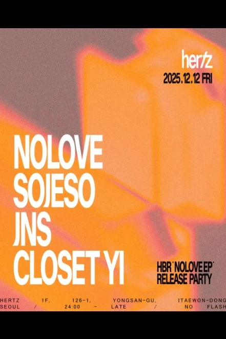 지난 11월 최초 공개된 프로듀서, 디제이 NOLOVE의 Honey Badger Records 데뷔작 'NOLOVE EP’ 릴리즈 파티가 Hertz에서 열린다. Honey Badger Records의 19번째 릴리즈로 디지털과 바이닐, 양 포맷으로 모두 발매된 ‘NOLOVE EP’는 미니멀, 퍼커시브한 그루브와 함께 섬세한 신시사이저 사운드가 돋보이는 음반으로, 파티 역시 그 주인공 NOLOVE의 디제이 셋과 더불어 JNS, Closet Yi, Sojeso 등 Honey Badger Records 멤버들이 함께할 예정이다.