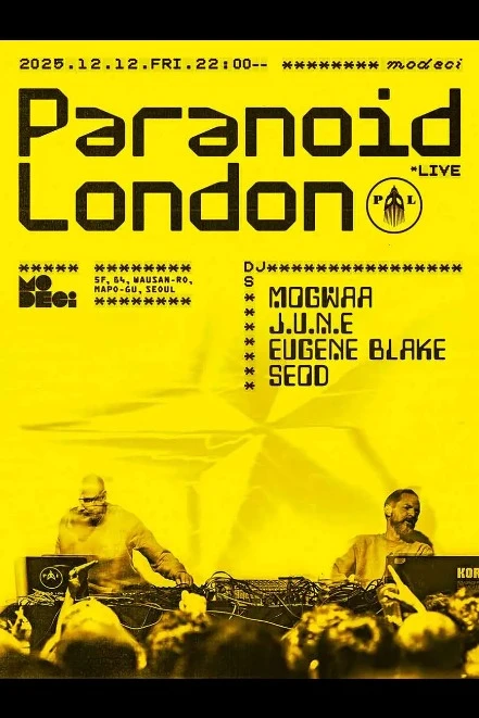 여기에 저명한 비주얼 아티스트 Bob Jaroc의 영상 연출이 더해지며, 새롭게 재정비된 풀 라이브 쇼는 한층 더 강력하고 압도적인 경험을 제공합니다. 세 장의 비평가 극찬 앨범과 수많은 12인치 싱글, 에디트 덕분에 파라노이드 런던은 여전히 전 세계 DJ들의 레코드 박스와 무대, 그리고 부스를 지키는 확고한 존재로 남아 있습니다.